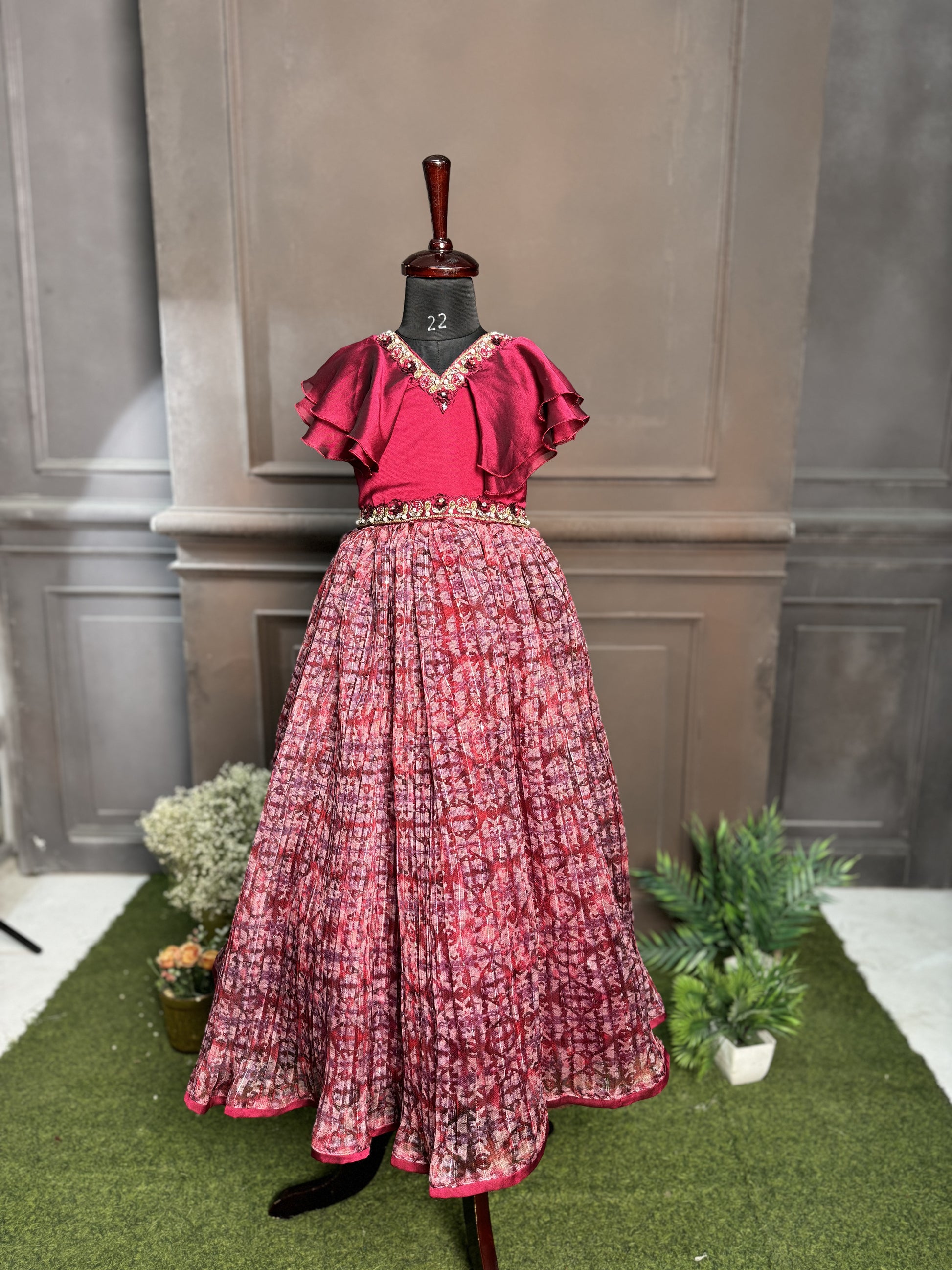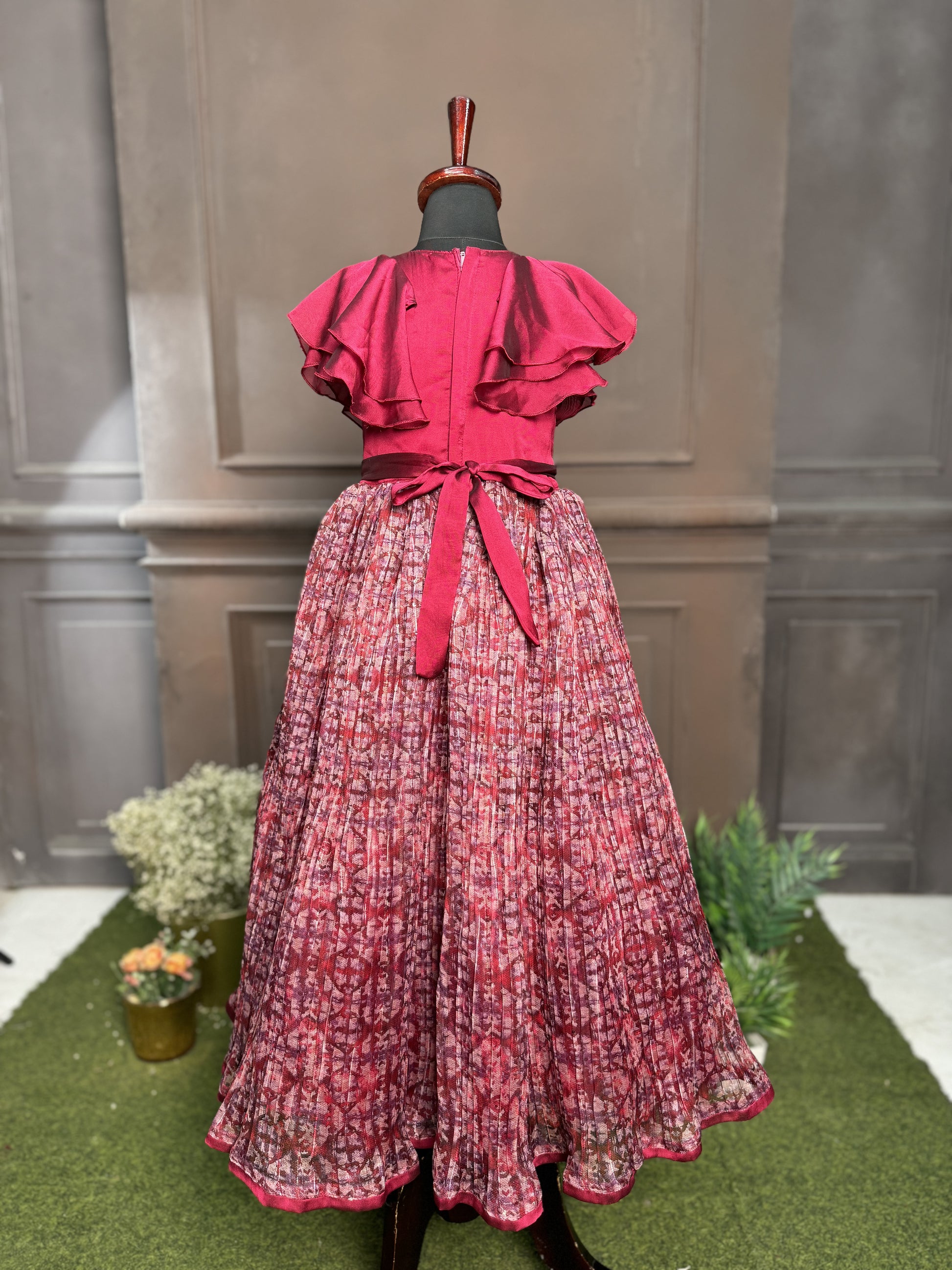 Maroon Coloured Printed Fancy Party Wear Gown For Girls / Designer Ethnic Wear Online / House Of Betty