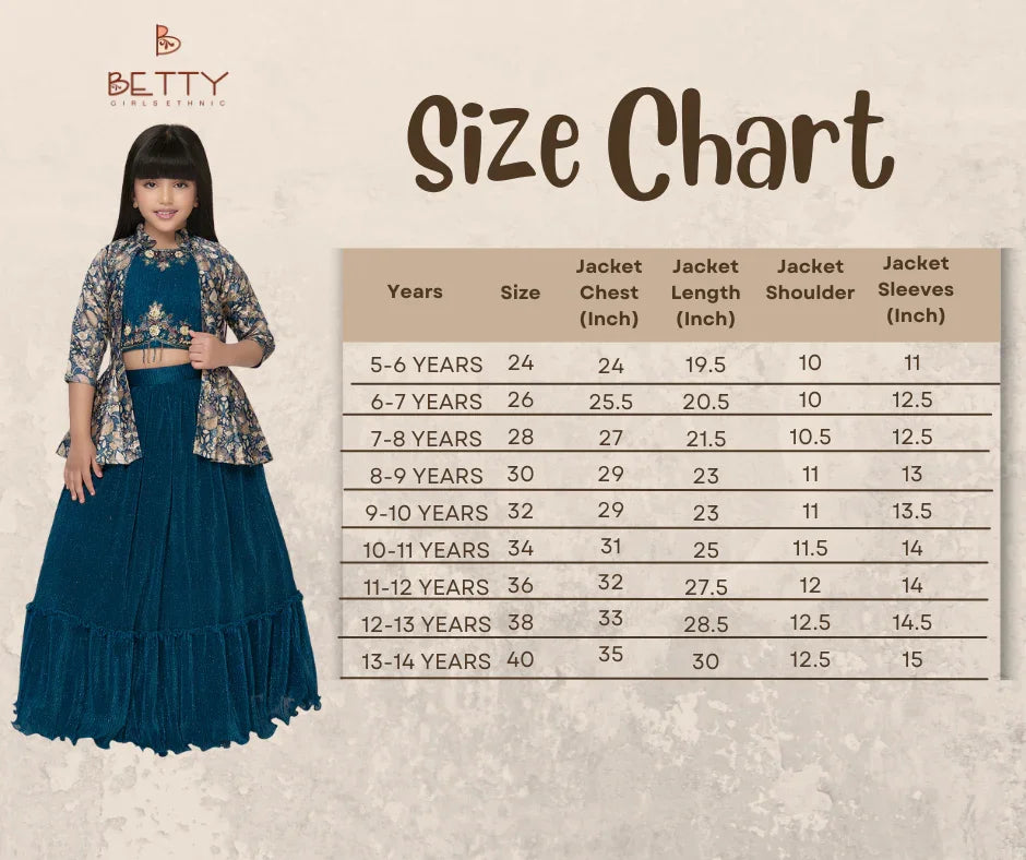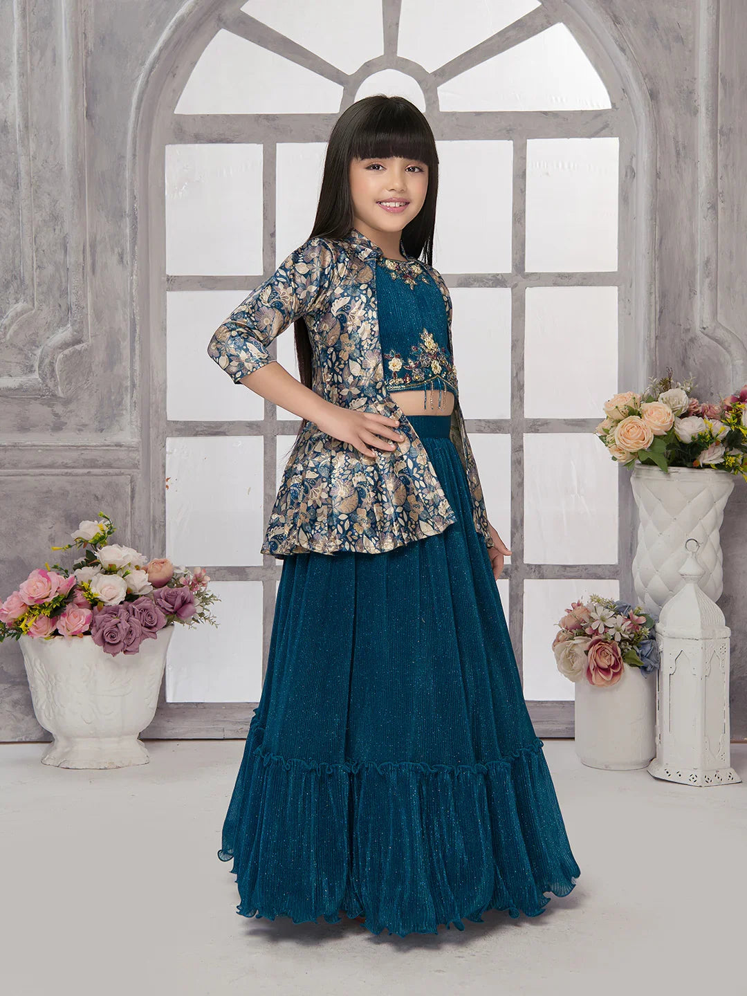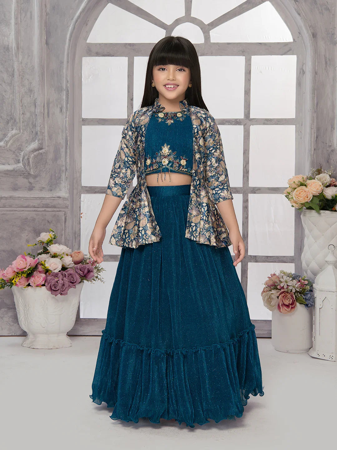 Betty Powder Blue Embroidered Girls' Lehenga Choli Set with Jacket – Ready to Wear (5–15 Years)