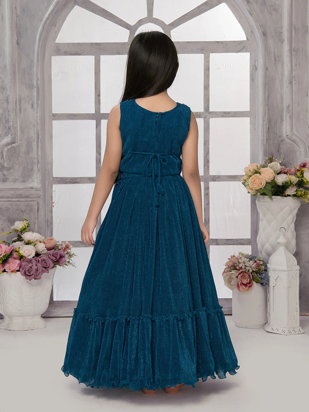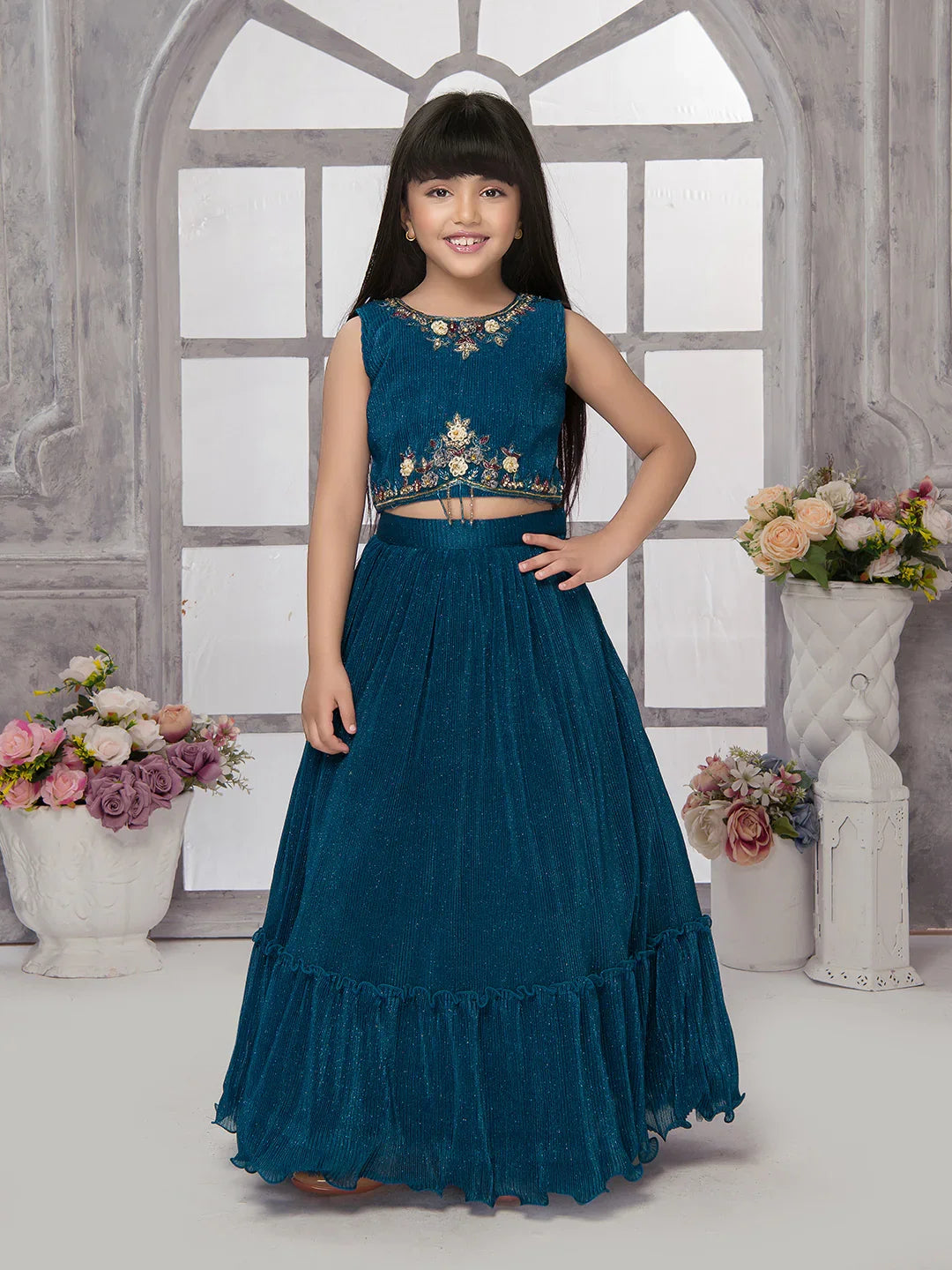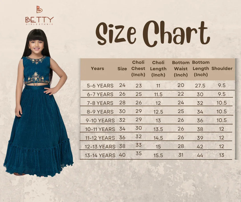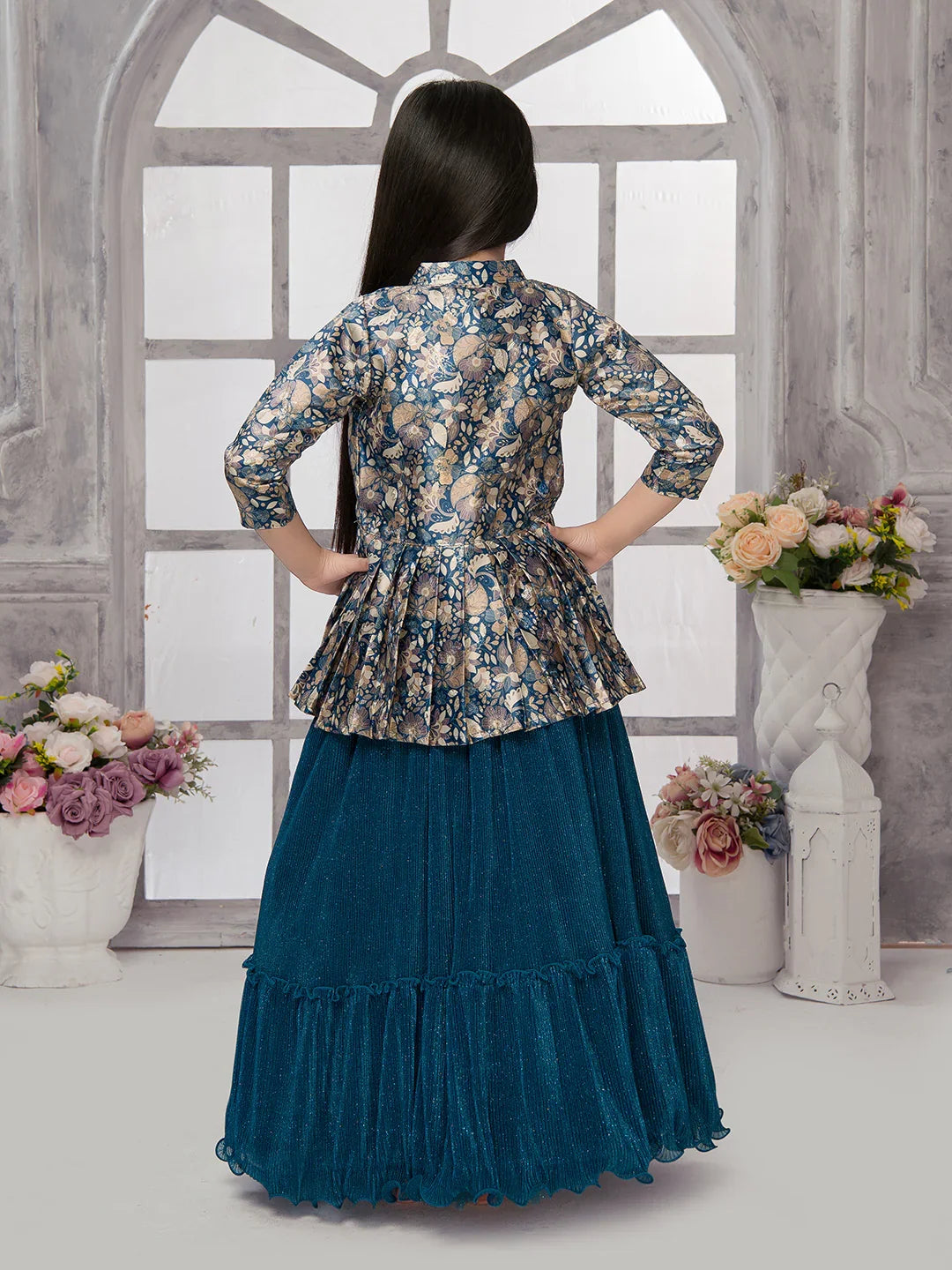 Betty Powder Blue Embroidered Girls' Lehenga Choli Set with Jacket – Ready to Wear (5–15 Years)