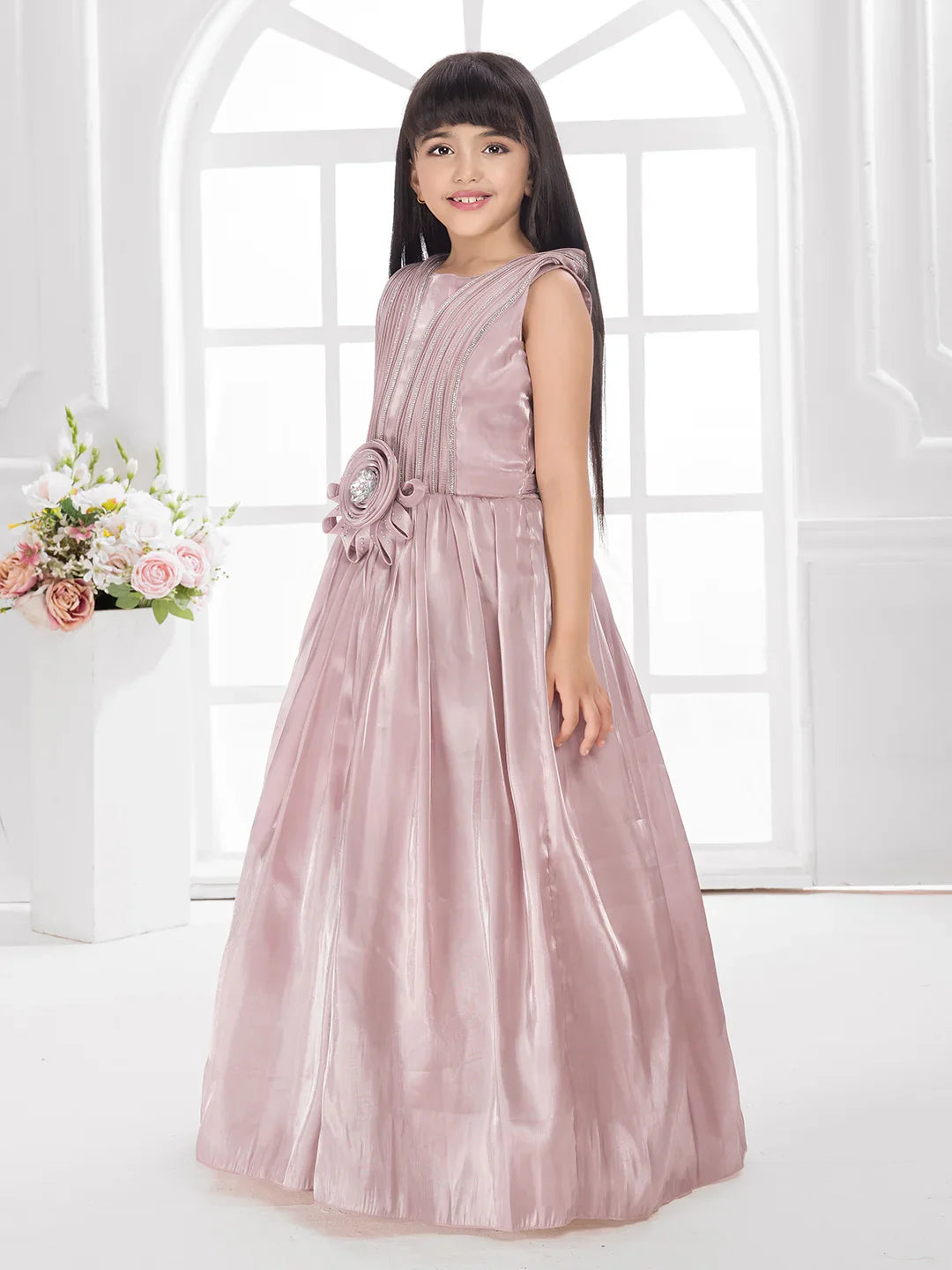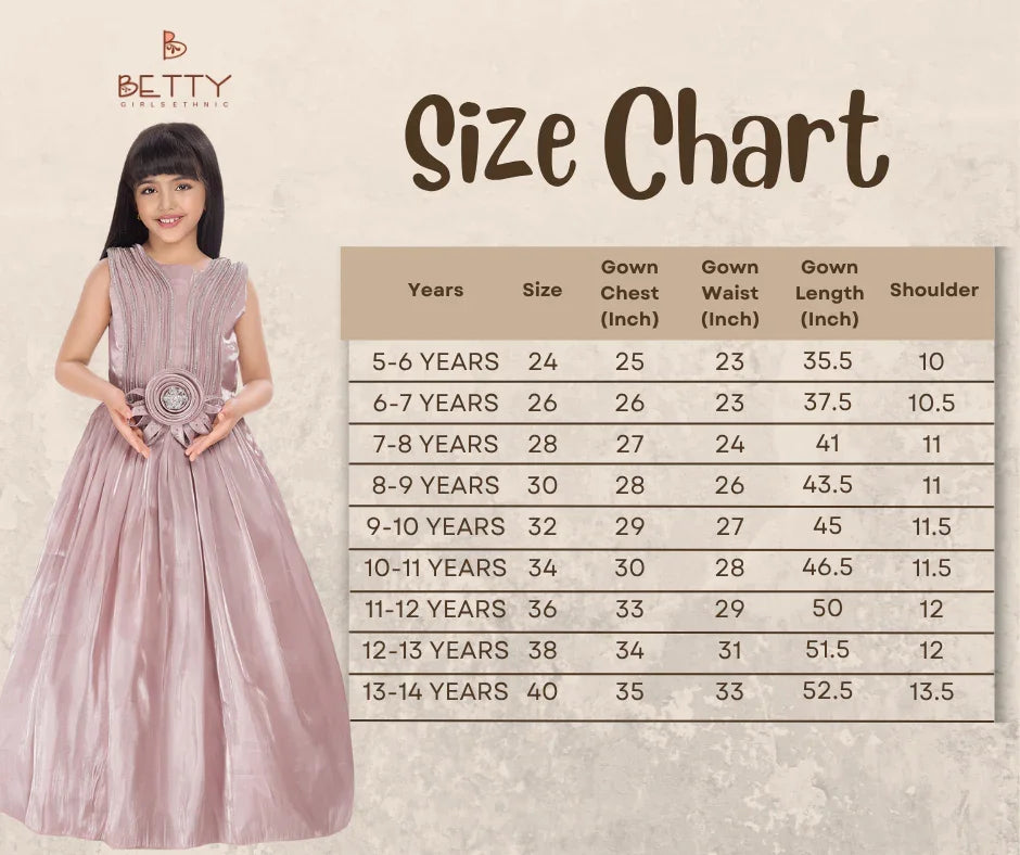 Make her feel like a modern-day princess in this Orchid Embellished Gown Dress, thoughtfully crafted in luxurious poly silk with corsage detailing. Designed with a fit & flare silhouette, this gown features a round neckline, sleeveless cut, and a flowing flared hem — perfect for twirling through weddings, birthdays, or any grand occasion.